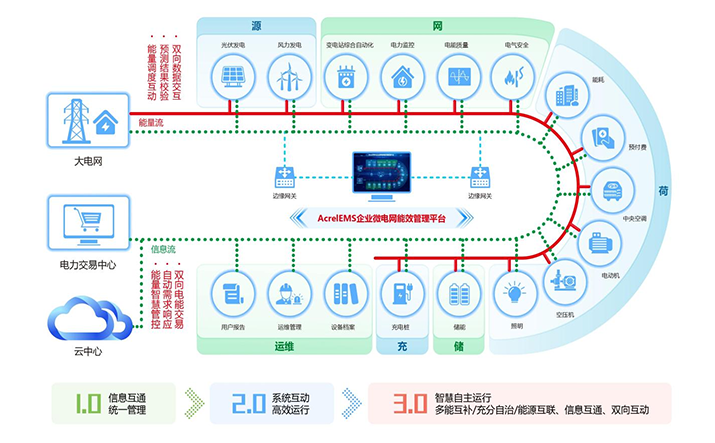 簡(jiǎn)介:1.概述 通過在源、網(wǎng)、荷、儲(chǔ)、充的各個(gè)關(guān)鍵節(jié)點(diǎn)安裝監(jiān)測(cè)、分析、保護(hù)、治理裝置, 通過高性能邊緣計(jì)算網(wǎng)關(guān)采集數(shù)據(jù)并上傳至企業(yè)微網(wǎng)平臺(tái)。平臺(tái)根據(jù)新的電網(wǎng)價(jià)格、 用電負(fù)荷、電網(wǎng)調(diào)度指令等情況,調(diào)整各系統(tǒng)控制策略并遠(yuǎn)程下發(fā),使企業(yè)微電網(wǎng)始終高效穩(wěn)定運(yùn)行, 降低企業(yè)用電成本,實(shí)現(xiàn)能源互聯(lián)、信息互動(dòng)。 2.應(yīng)用場(chǎng)所 適用于各行業(yè)企業(yè)內(nèi)部微電網(wǎng)管理系統(tǒng)的新建、擴(kuò)建、改建等項(xiàng)目。 3.平臺(tái)結(jié)構(gòu) 3.平臺(tái)功能 安科瑞AcrelEMS企業(yè)微電網(wǎng)能效管理平臺(tái)融合了電力監(jiān)控、電氣安全、照明控制、能源管控、充電樁運(yùn)營管理、分布式光伏監(jiān)測(cè)、儲(chǔ)能管理、設(shè)備臺(tái)賬、運(yùn)維管理等功能,通過一個(gè)平臺(tái)、一個(gè)APP整體的對(duì)企業(yè)用電進(jìn)行集中監(jiān)控、統(tǒng)一調(diào)度、統(tǒng)一運(yùn)維,并且根據(jù)當(dāng)?shù)毓╇姴块T錯(cuò)峰避峰計(jì)劃提前為企業(yè)制定錯(cuò)峰避峰方案和預(yù)警,滿足企業(yè)